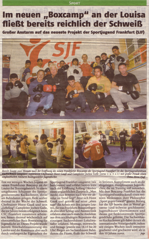organisierte. Rezension von Frau Gordon-Pusch vom Frankfurter Stadtkurier zu meinem Buch vom 23.September 2008![]() Boxsport Oktober 2008![]() Frankfurter Neue Presse vom 10.9.2008Frankfurter Neue Presse vom 13.12.2007Frankfurter Neue Presse am 26.9.2007 :Mein Schützling Raja Amasheh , "die Kampfmaus" wurde Deutsche Vizemeisterin in Berlin !![]() Frankfurter Allgemeine zu meinm 70.GeburtstagIm Spiegel der PresseFAZ: zum Untergang des CSC 30.9.06![]() ![]() Beitrag: Sachsenhäuser Blättche vom 26.10.2006 ![]() Sachsenhäuser Blättchen: vom 2.11.2006 Interview - "Rhein-Main-TV am 15.Februar 2007 |